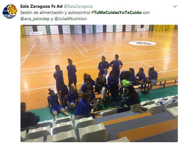 Además, hemos renovado convenio con el primer equipo del Sala Zaragoza (actualmente en División Plata Nacional Femenina). El trabajo con esta entidad en cuanto a psicología deportiva se consolida esta segunda temporada. La coordinación con el staff técnico sigue dando buenos resultados, un ejemplo de ello es el programa de nutrición y hábitos saludables dirigido a las jugadoras de los equipos de Autonómica y Plata.
